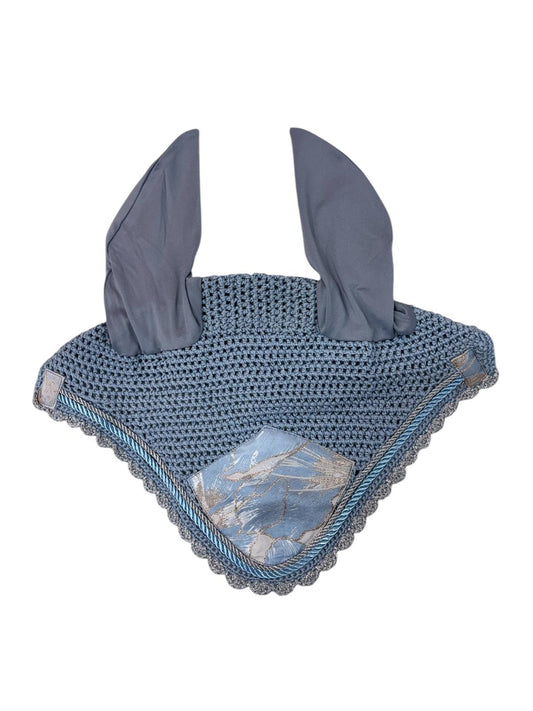 CONJUNTO MANTILLA TY OREJERAS WHISPPERER CLUB DOMA AZUL CIELO HOJAS
