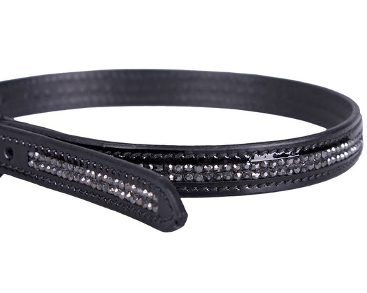 CORREA ESPUELA QHP CHAROL Y BRILLANTES NEGRA