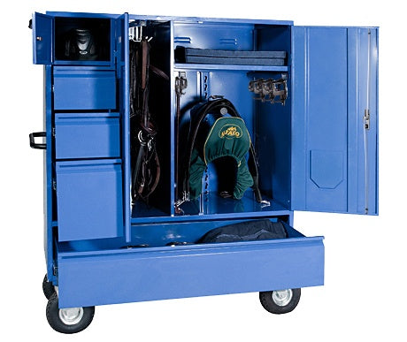 ALFAKO MAXI PLUS: elegancia y funcionalidad para jinetes exigentes. El baúl de concurso MAXI PLUS ha sido especialmente diseñada para satisfacer las necesidades de los jinetes que exigen mucho de una taquilla. Esta taquilla no solo es extremadamente espaciosa, sino que también cuenta con un compartimento independiente con cerradura para guardar sus documentos y objetos de valor de forma segura.