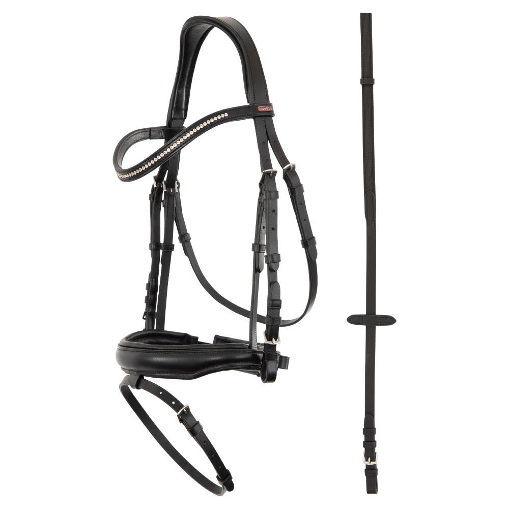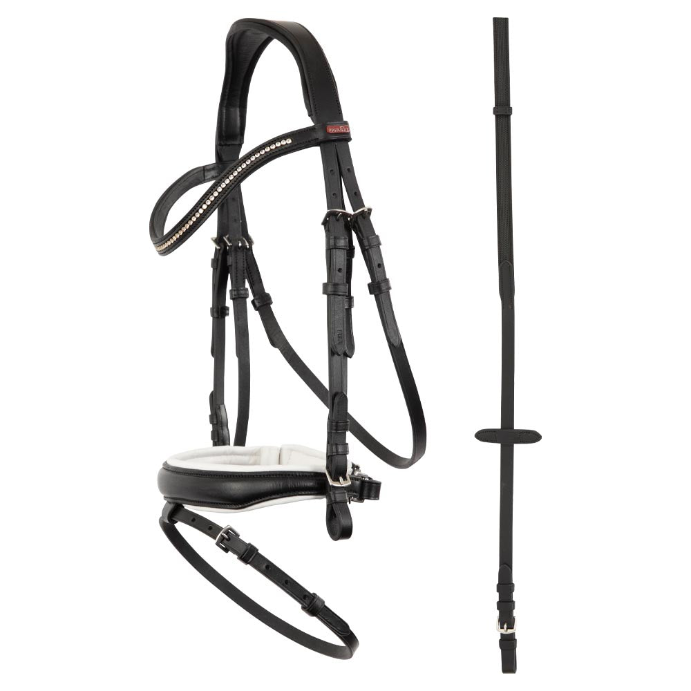 Esta brida se centra en la anatomía y la comodidad. Además, es un deleite para la vista gracias a los elegantes y brillantes diamantes de imitación en la frontalera.