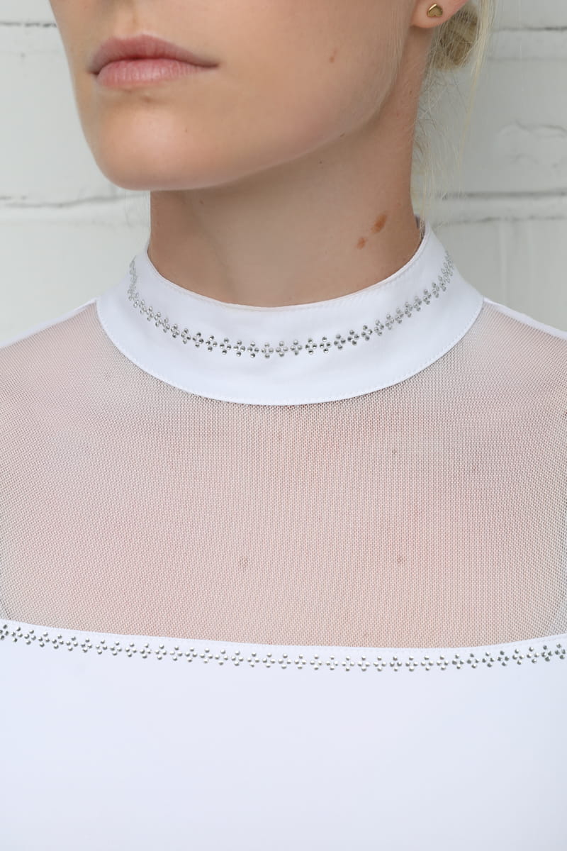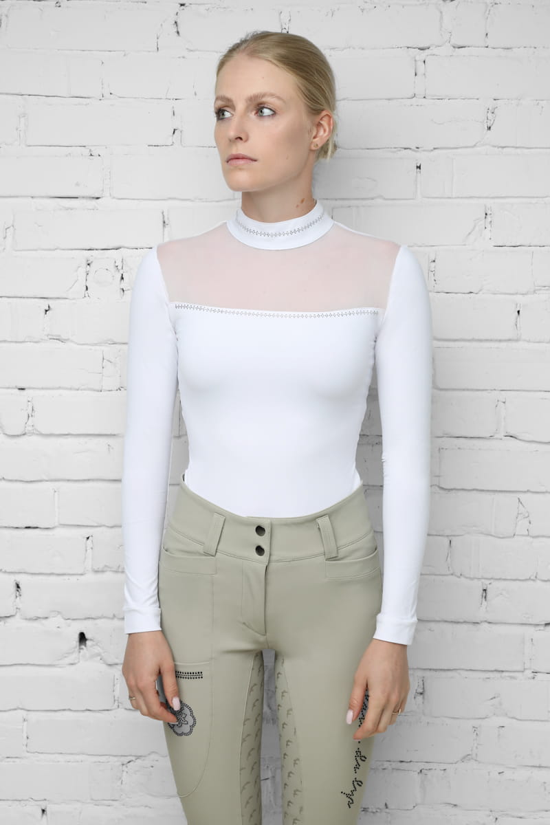 Presentamos la Camisa de Equitación Petunia, una combinación perfecta de elegancia y funcionalidad para el jinete exigente. Esta exquisita camisa combina elementos de diseño elegantes con características de alto rendimiento, lo que la convierte en una opción ideal para cualquier ocasión de equitación.