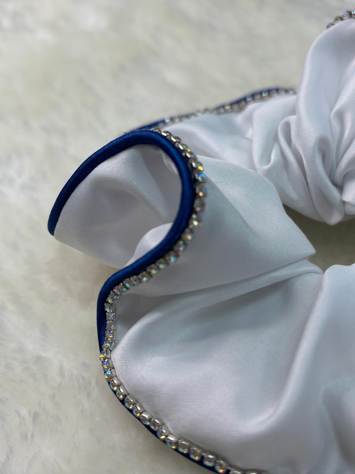 Coletero blanco con ribete azul y tira brillantes blancos