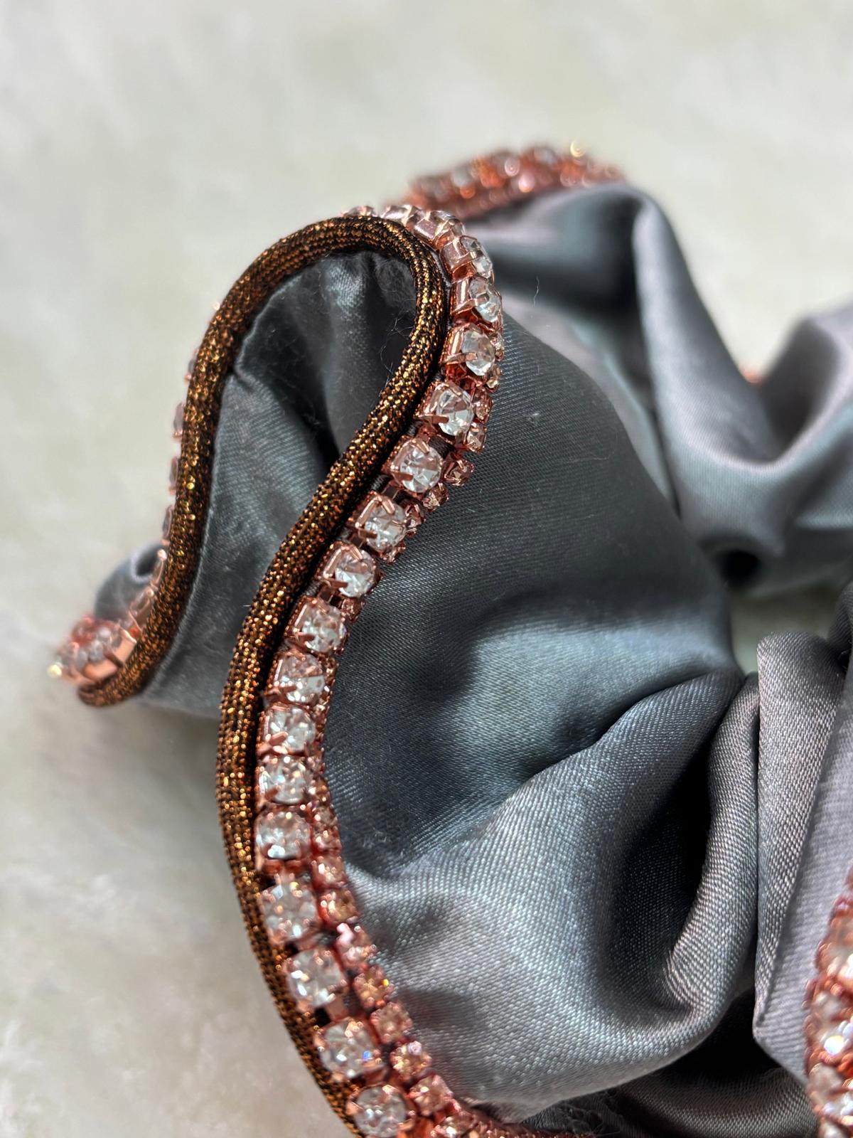 Coletero gris combinado con dos tiras brillantes rosa gold