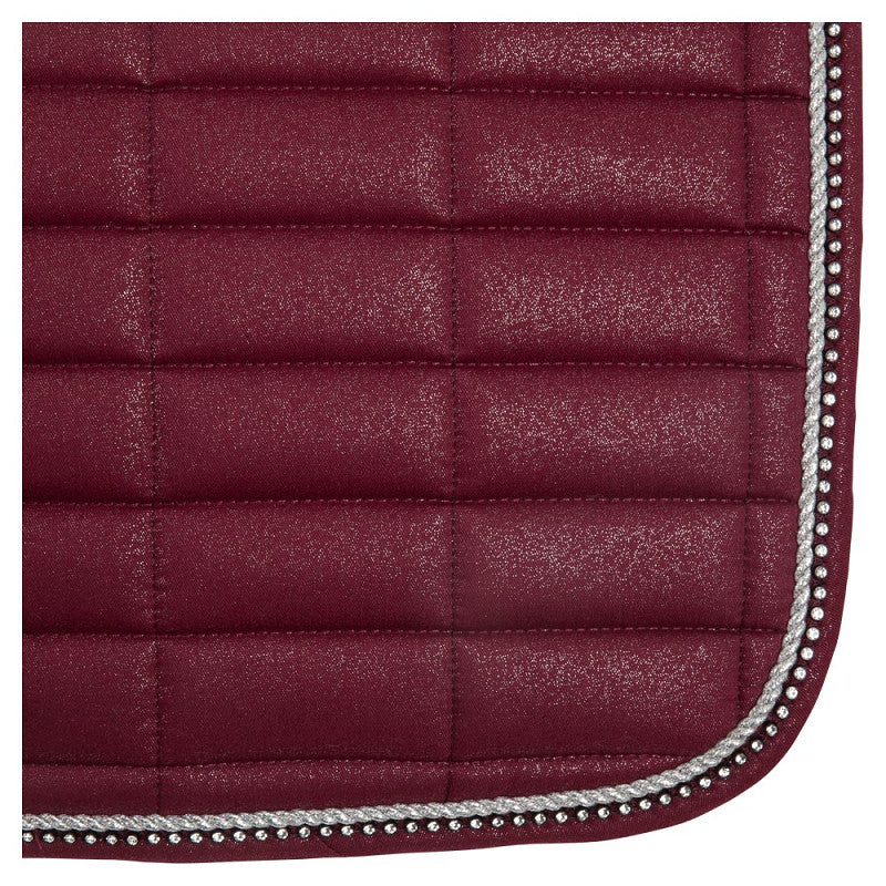 Elegante sudadero de montar, hecha de algodón poliéster con un forro de poliéster Airflow. La sudadera cuenta con un relleno de 300 g de polyfill y 10 mm de espuma. Presenta un acolchado en forma de cuadros de 10 x 5 cm. Está decorada con un cordón plateado y ribetes con imitaciones de diamantes. Las presillas para la cincha y las correas de sujeción tienen cierre de velcro.