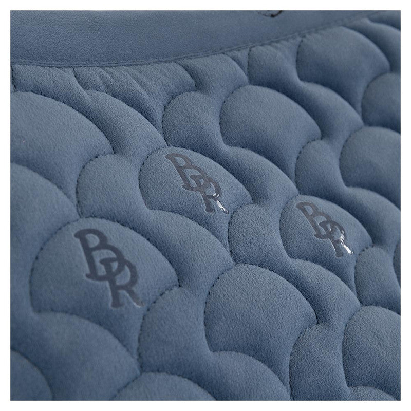 Mantilla de montar elegante con diseño lujoso y cinta decorativa. Su costura anatómica trasera garantiza un ajuste firme. Forro Cool Plus de 220 g que regula la humedad y relleno amortiguador de 700 g de fieltro con 8 mm de espuma. Incorpora silicona antideslizante, frontal desmontable de piel sintética, correa de Velcro desmontable y ajustable, y detalles decorativos en la correa de la cincha. Exterior de terciopelo.