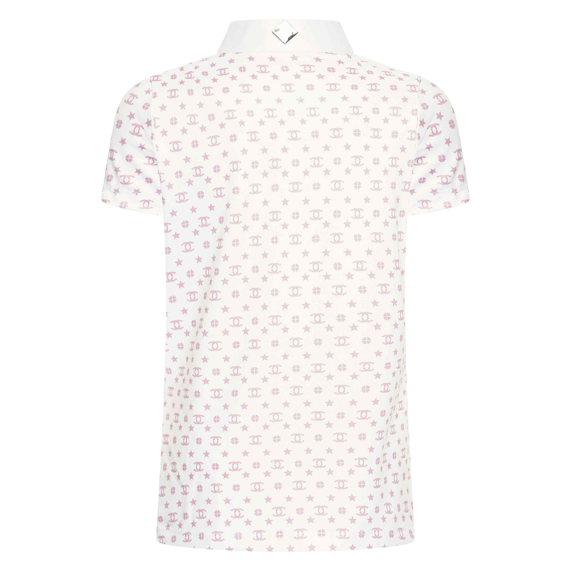 Camiseta de competición * Cuerpo y mangas de fondo blanco con estampado azul marino * Cuello alto blanco con el logotipo de IMPERIAL RIDING en el centro de la espalda * Abertura corta en el centro delantero con elegantes botones de diamantes de imitación * Fruncido en el pecho