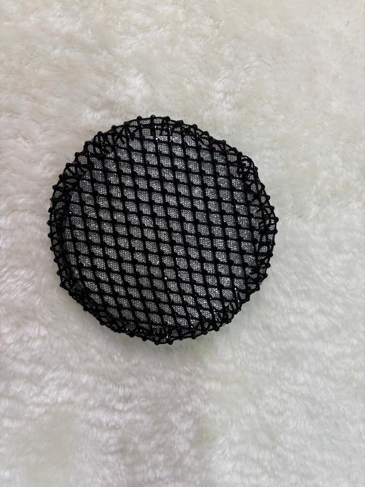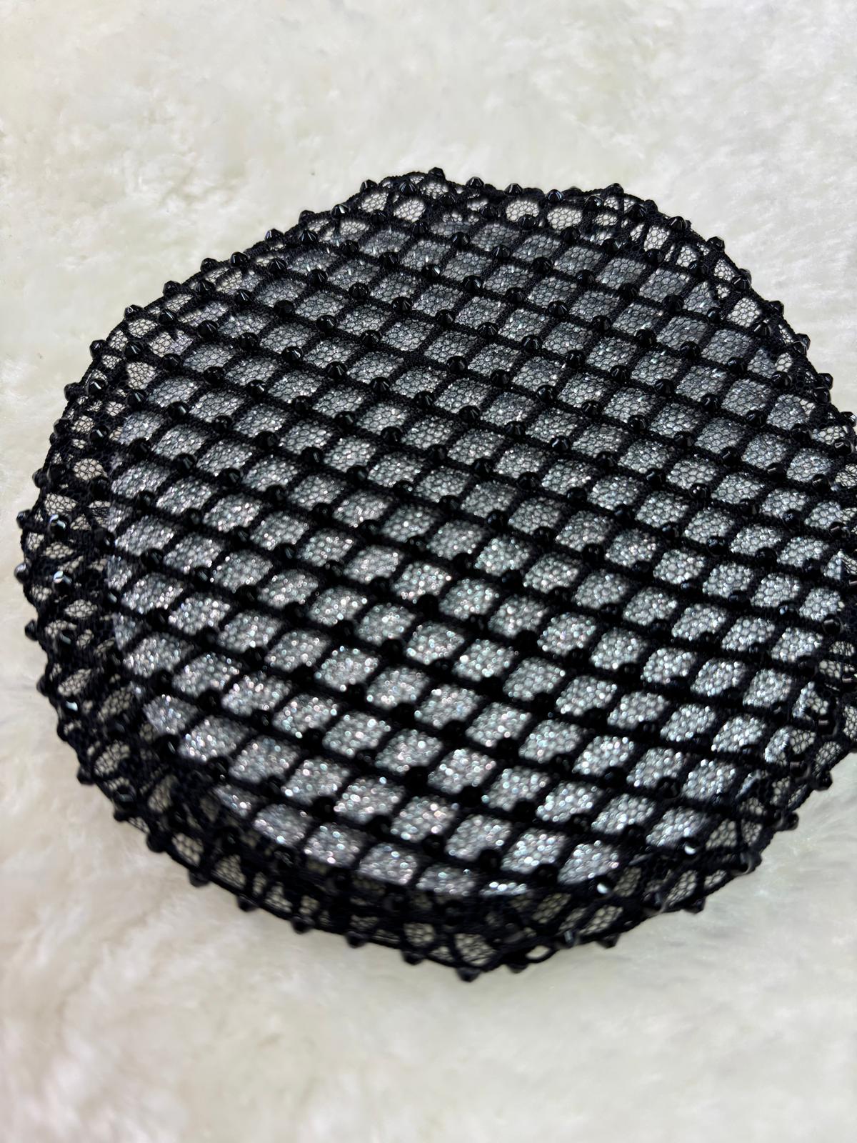 Elegante red con tul y malla negra que se ajusta perfectamente al cabello recogido.