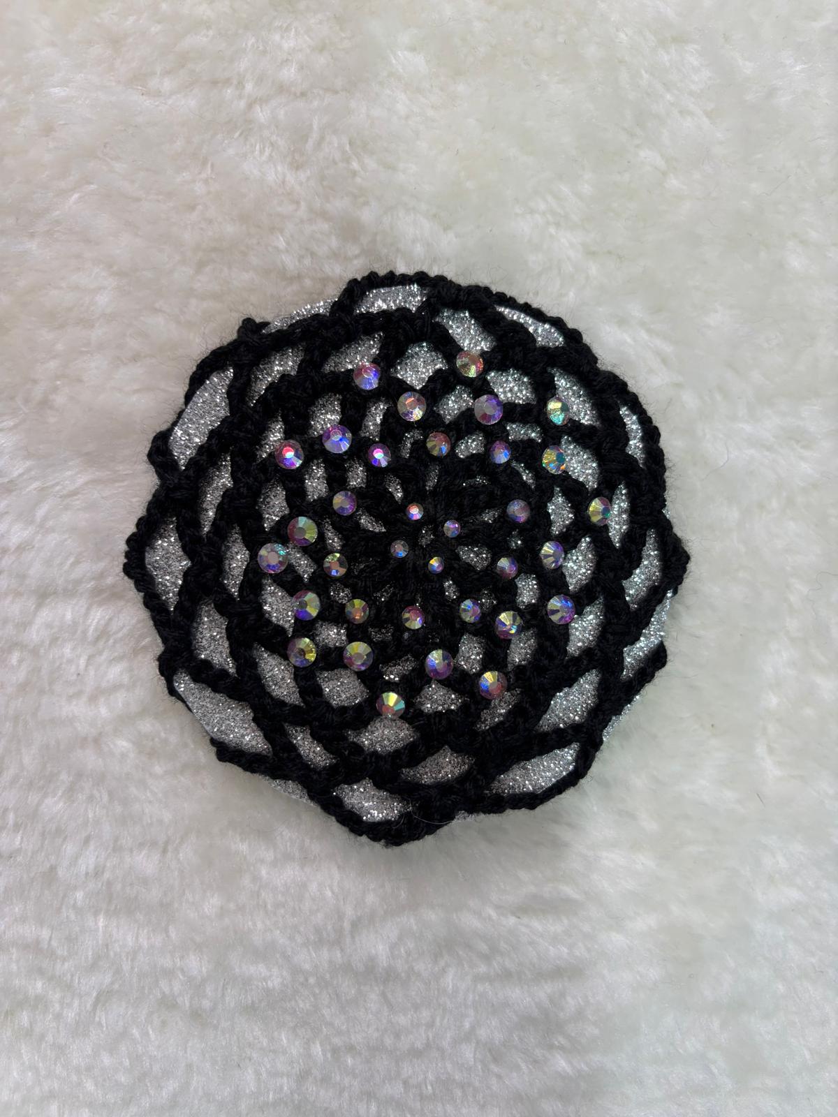Elegante red hecha a mano de color negro con brillantes aplicados que se ajusta perfectamente al cabello recogido.